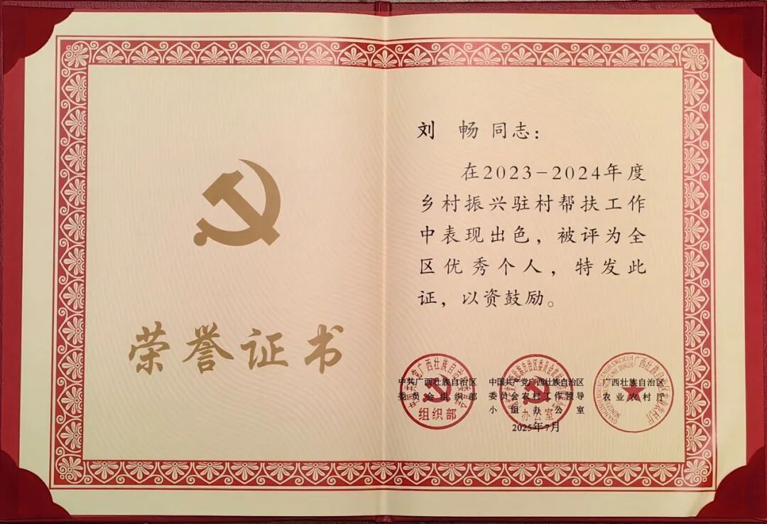 预算工委党支部党员刘畅荣获“2023—2024年度全区驻村工作队优秀个人”称号 (岳梦/摄)